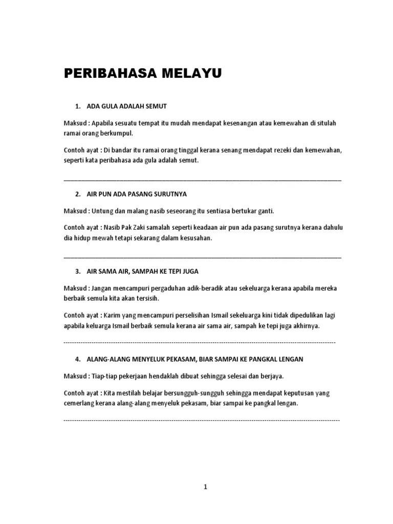 Contoh karangan peribahasa pt3 : Daftar peribahasa, (perumpamaan, amsal, adagium, dsb.).